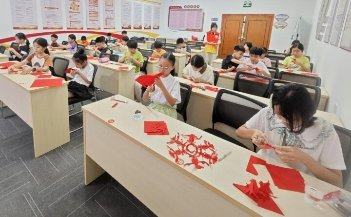 课上,手工粘土瓶子、剪纸DIY、家乡产业探索观看、家乡特色物产、非遗手工艺、趣味绘画与趣味书法等课程,激发孩子创造力!老师通过提问、游戏等方式引导孩子们主动思考,孩子们每次都积极回应,纷纷举起手来抢答问题,课堂氛围十分活跃。