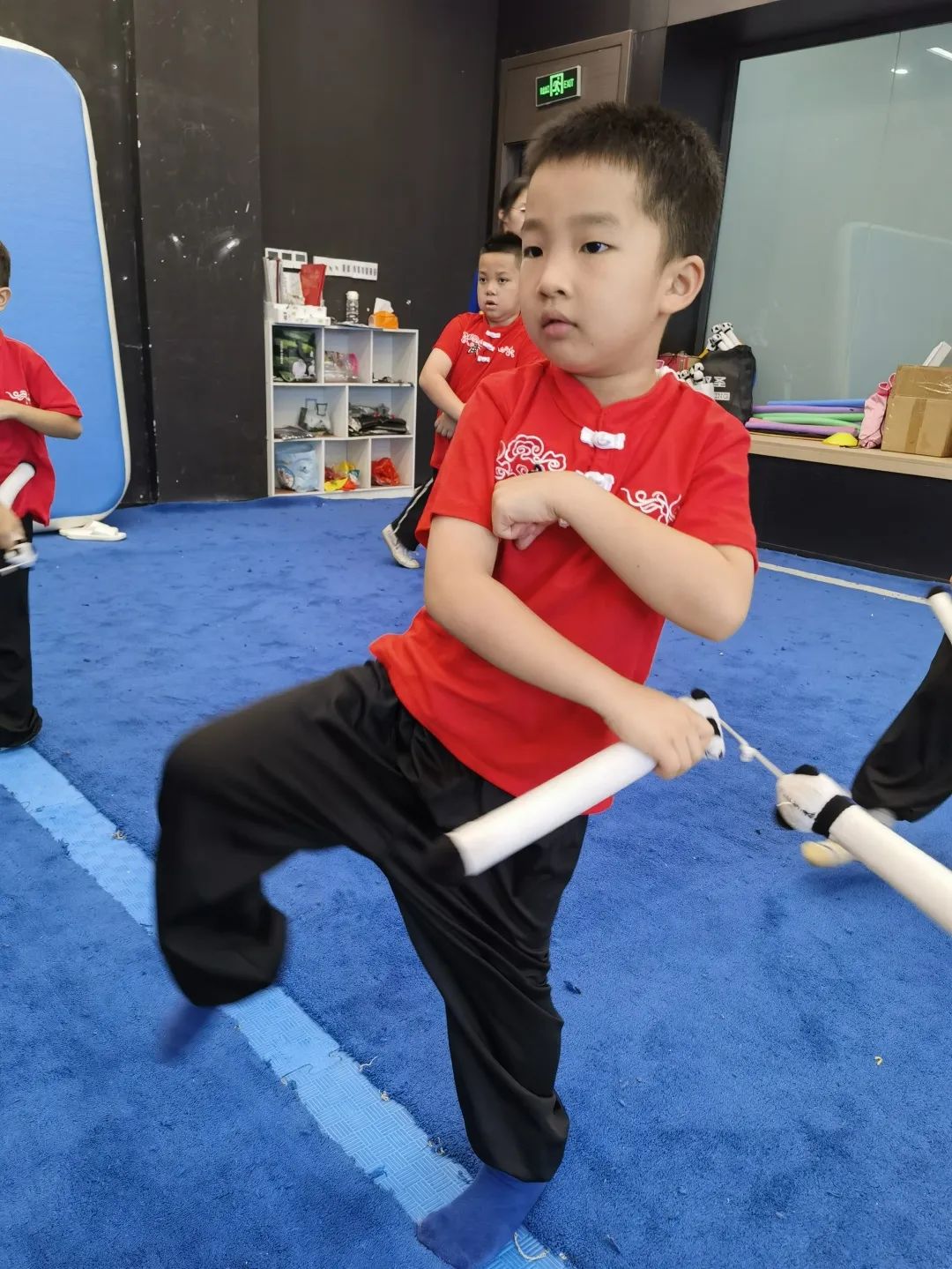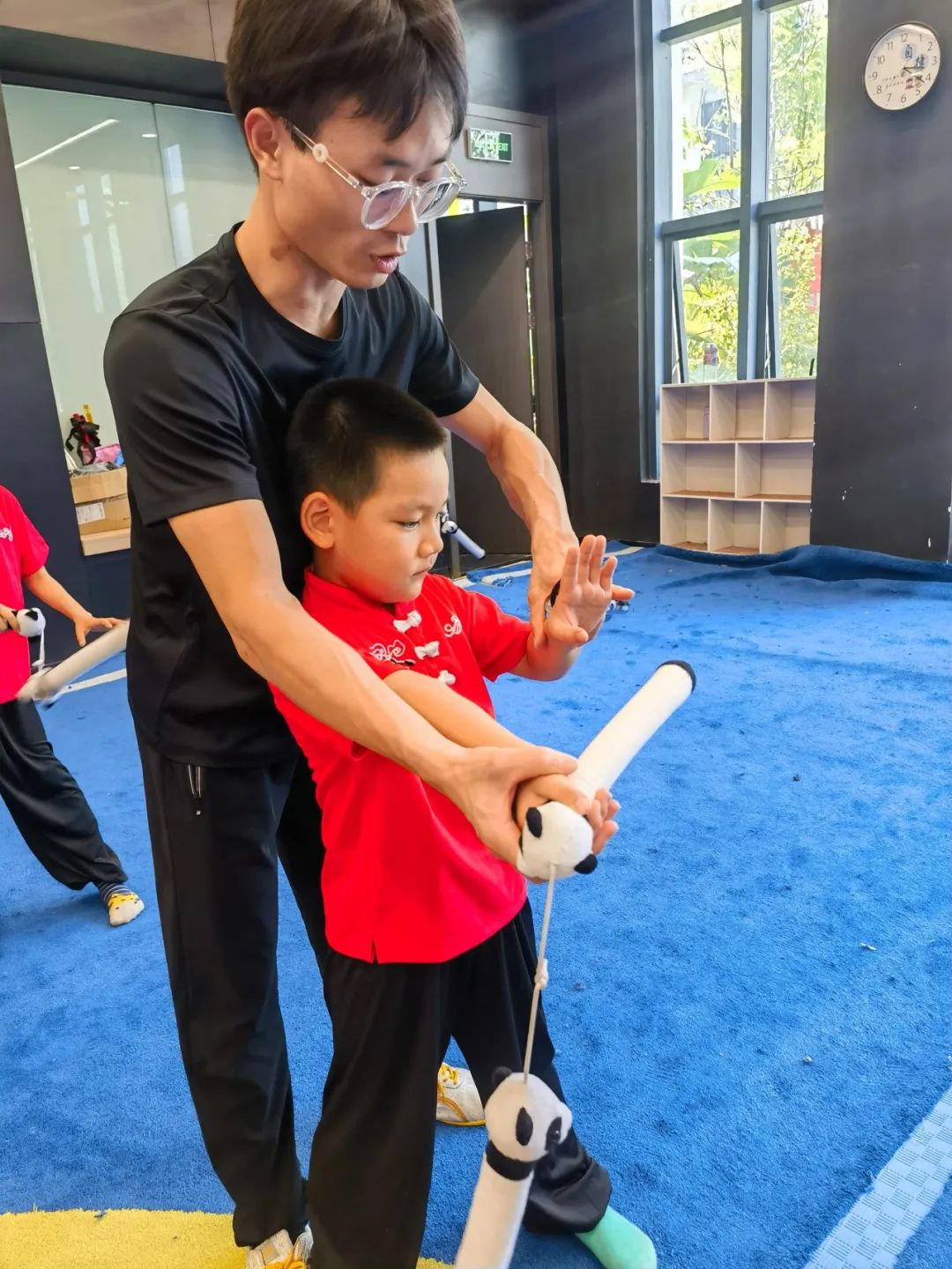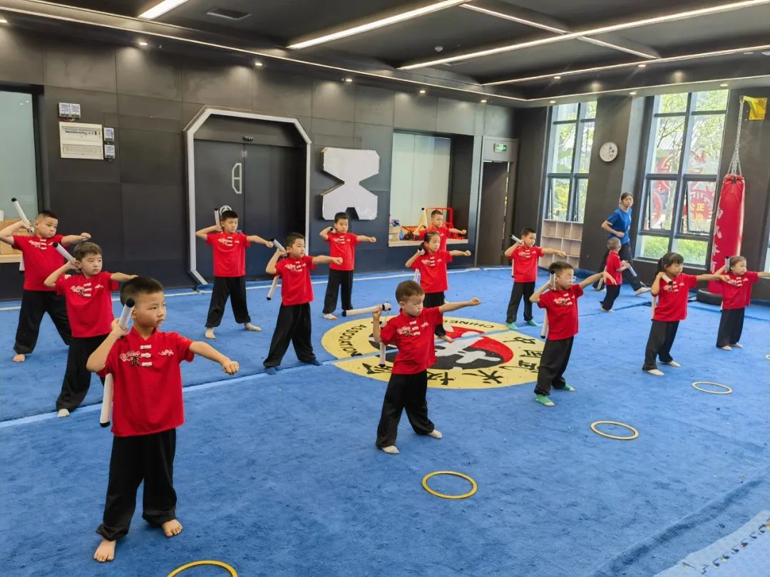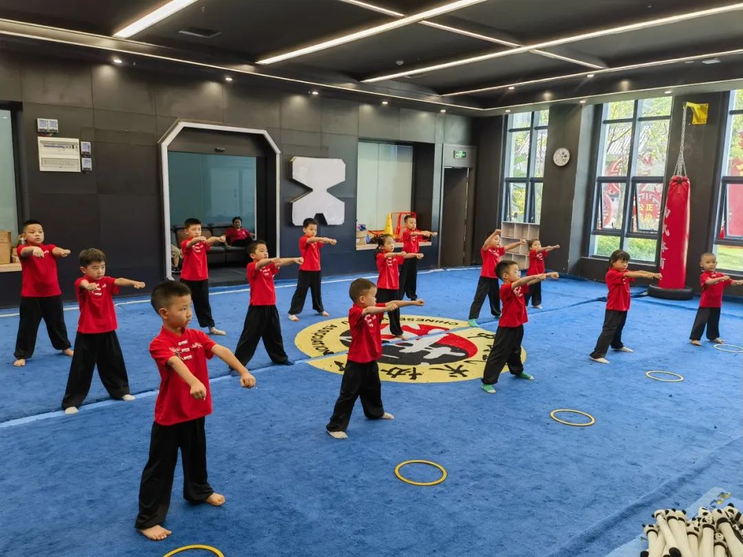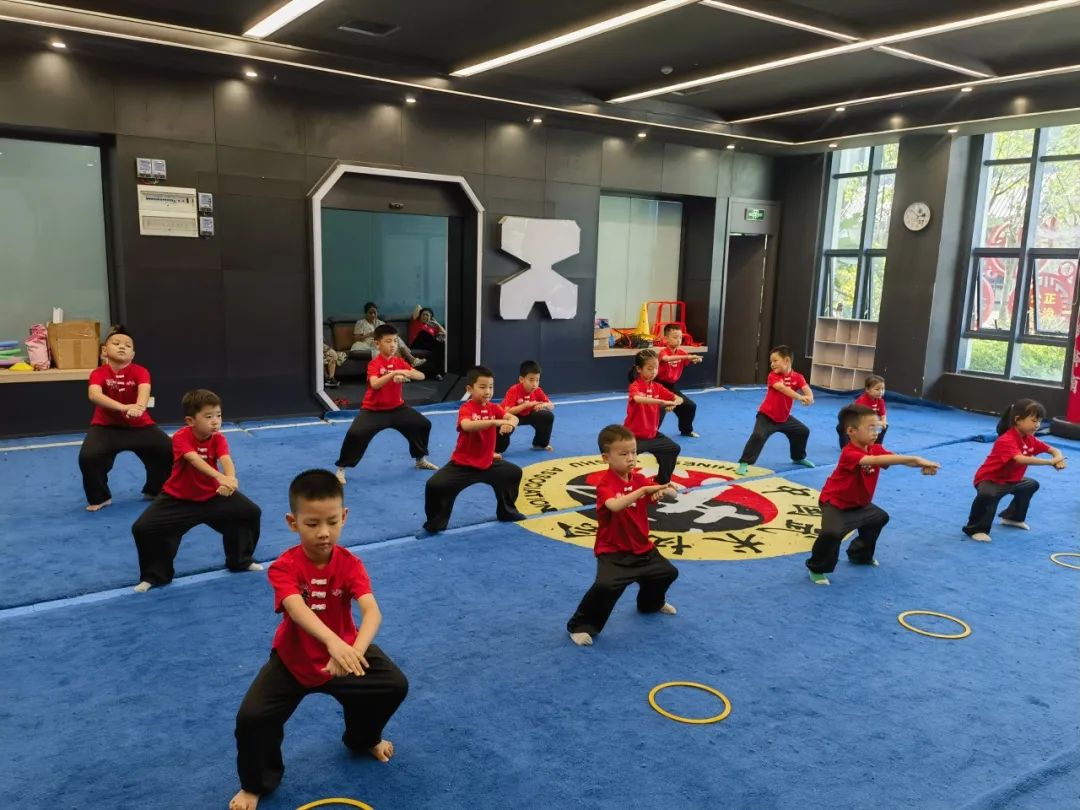 “扎马步要像大树一样稳!”课堂上,李智鹏教练把马步拆成“三关九节”趣味口令,孩子们边喊节拍边下蹲,笑声此起彼伏。将劈掌、冲拳等复杂动作转化为“切西瓜”“推城门”等生活化场景,真正做到“玩中学、学中练”。同时,每节课配备 2 名助教确保安全与效果双达标。