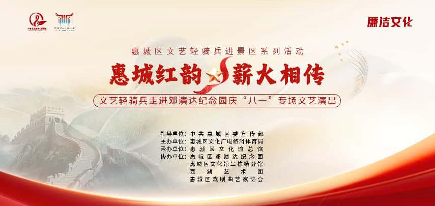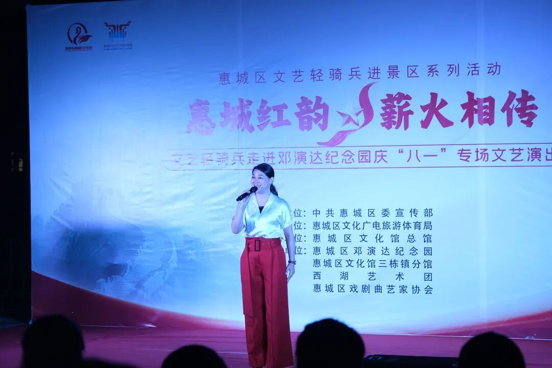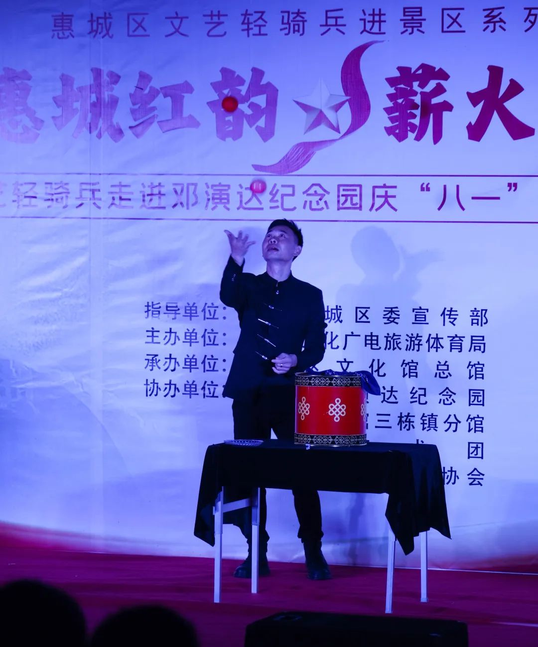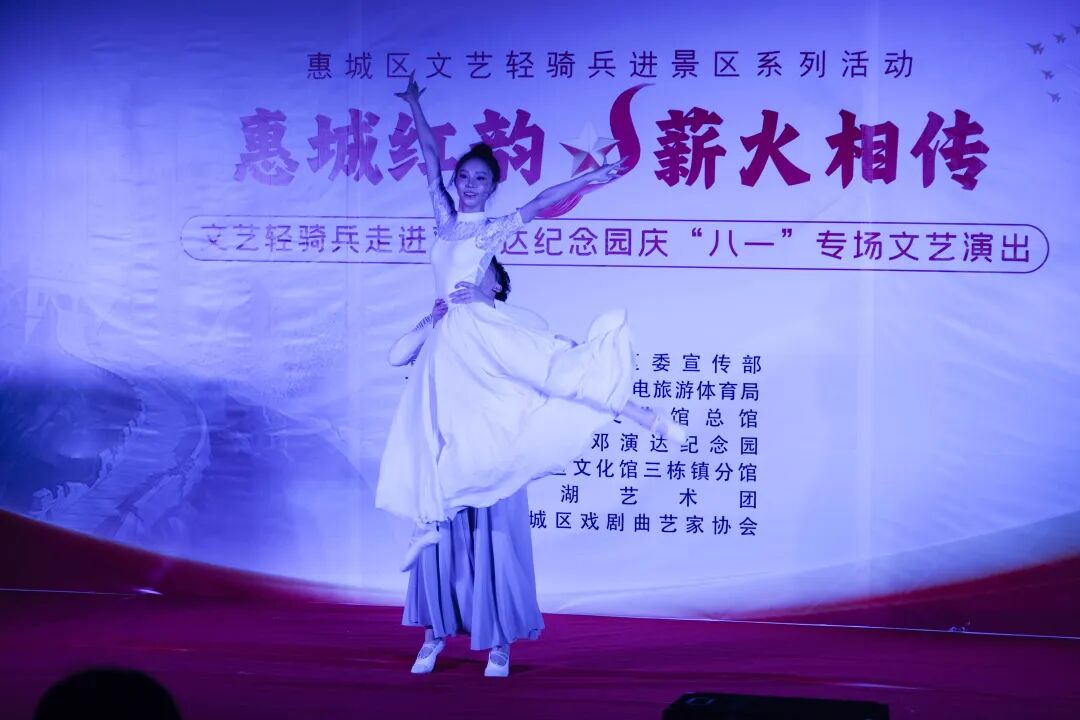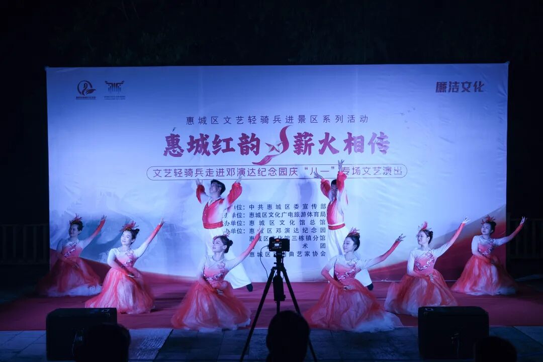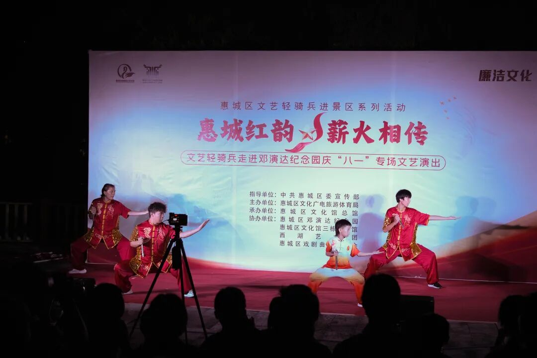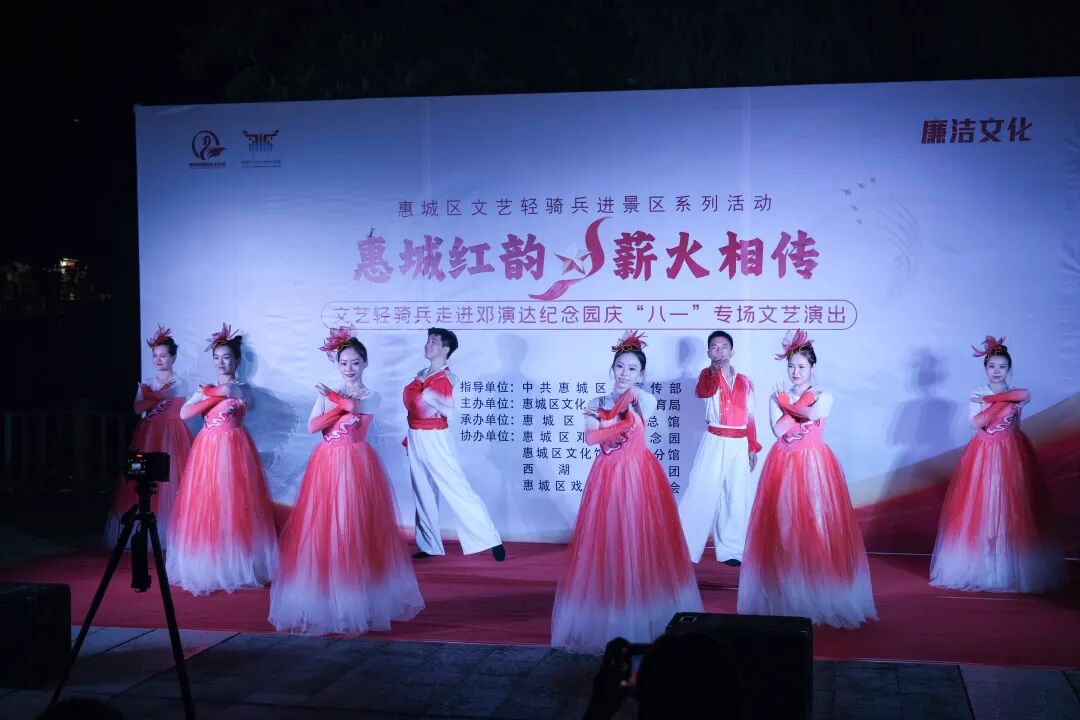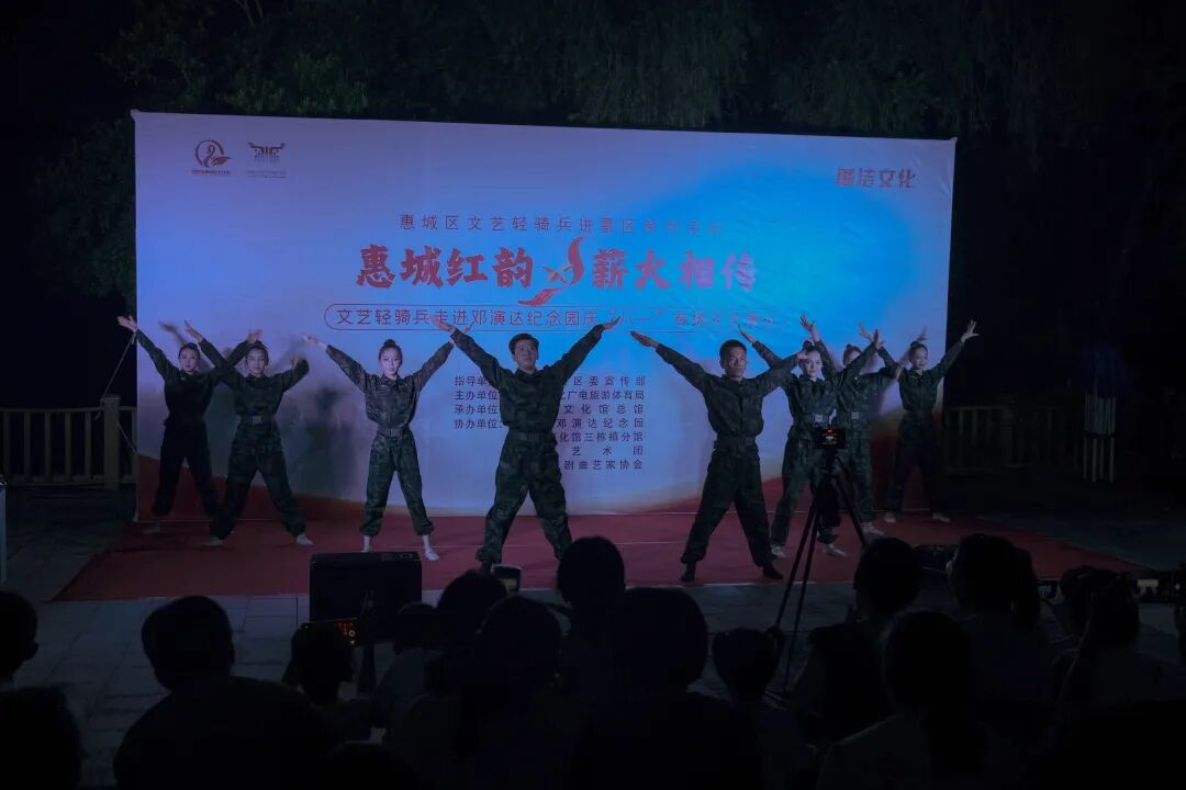 7月31日晚,“惠城红韵·薪火相传”——惠城区庆“八一”专场文艺演出在邓演达纪念园举行。这场由中共惠城区委宣传部指导,惠城区文化广电旅游体育局主办,惠城区文化馆总馆承办,多单位联合协办的文艺盛宴,以艺术之名致敬“八一”,让红色精神在惠城大地熠熠生辉。