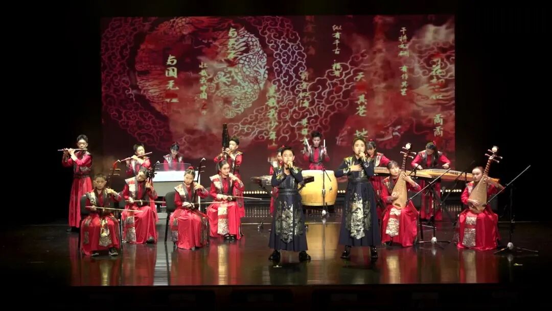 乐歌和鸣《少年风华》,乐歌激荡,心魂相契。作品根植于中华优秀传统文化沃土,聚焦当代青少年励志主题。以国乐为脉,童声为魂,艺术化呈现出青少年一代对传统文化瑰宝的传承与弘扬。它激励着:男孩当如旭日,淬炼刚健自强之气魄;女孩当似劲竹,焕发英姿飒爽之精神,共同谱写新时代中国少年意气风发、担当有为的华彩乐章。