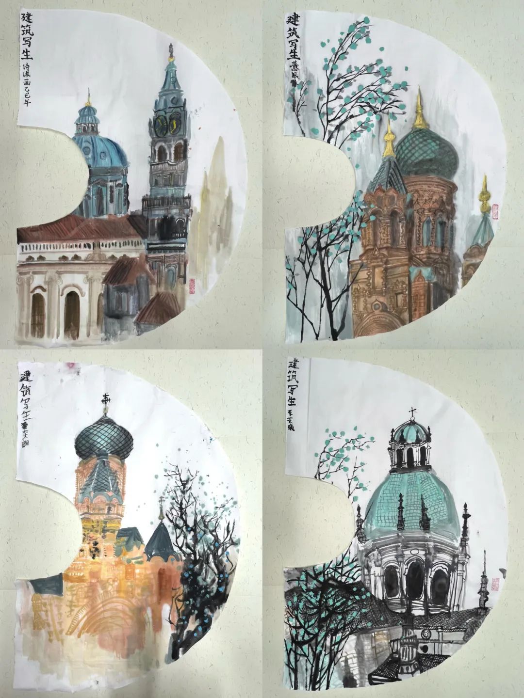 美术类三等奖作品:《墨韵建筑:写生扇面集》