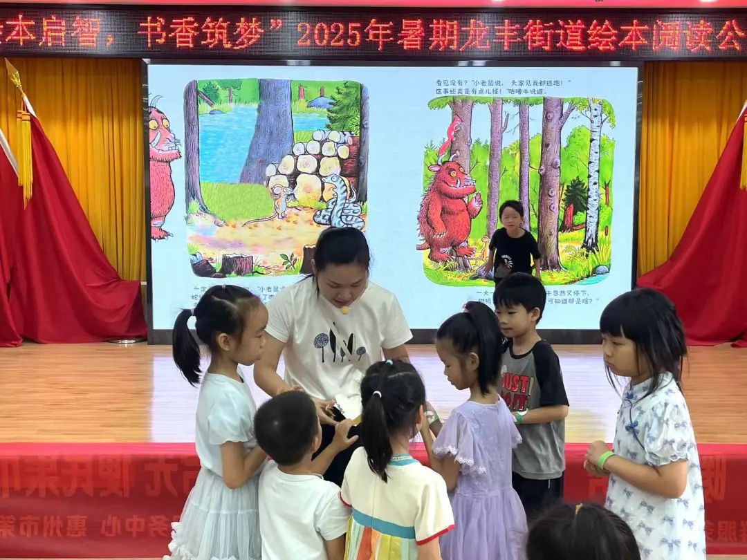 在龙丰街道持续推进的“绘本启智,书香筑梦”暑期系列活动里,最后一期课程以《咕噜牛》为主题,为孩子们打造了一场别开生面的语言与思维奇旅,用趣味互动解锁绘本阅读新玩法。