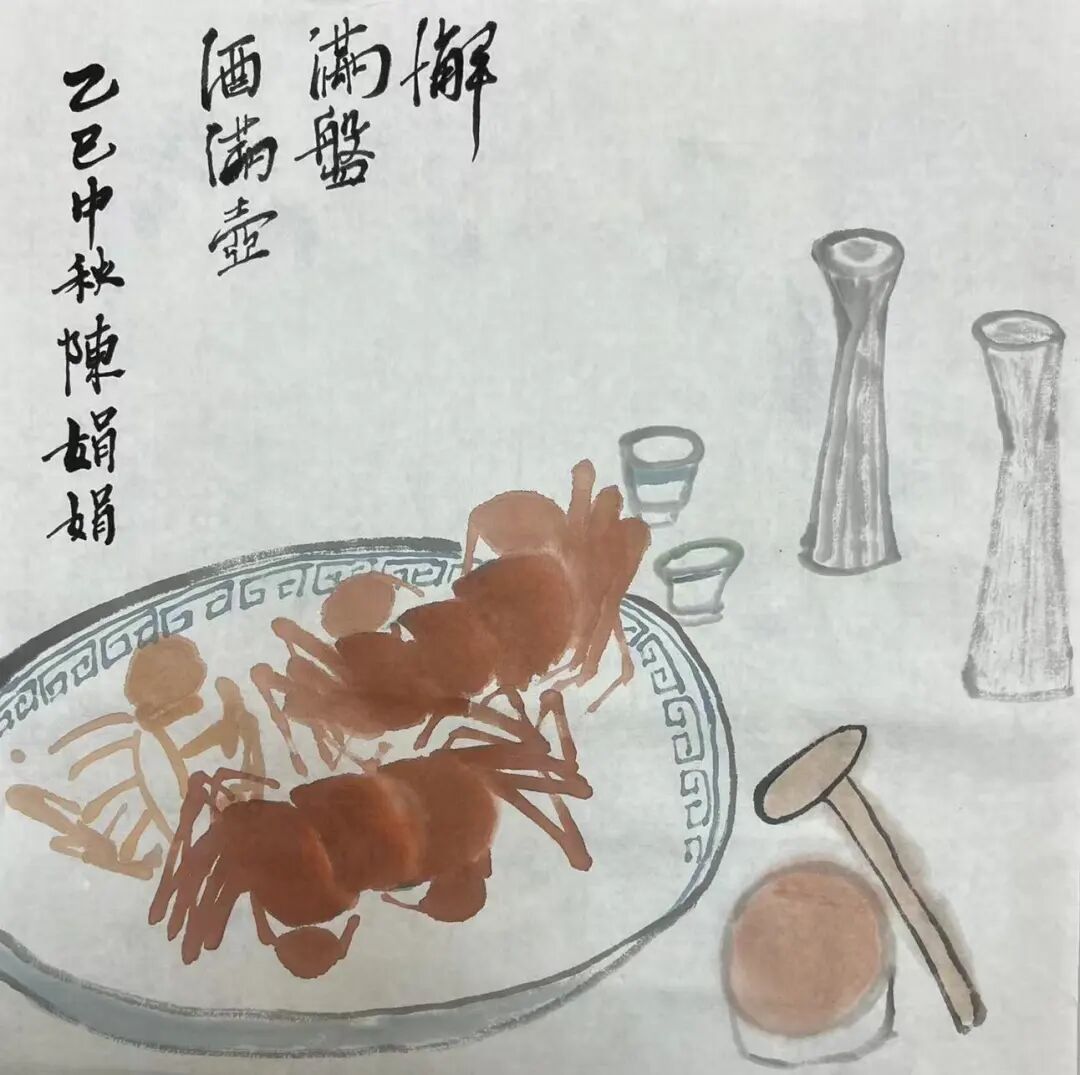 活动中,国画老师首先向学员们介绍了中秋、国庆的节日文化内涵,细致讲解了国画写意的基础知识、笔墨运用技巧以及螃蟹、月饼等应景元素的绘画方法。在老师的耐心指导下,学员们手持毛笔,轻蘸墨汁,认真在宣纸上勾勒渲染。从螃蟹的灵动姿态到月饼的团圆寓意,一笔一画间,不仅学习了国画技法,更深深感受到了水墨丹青背后蕴含的东方美学与文化自信。