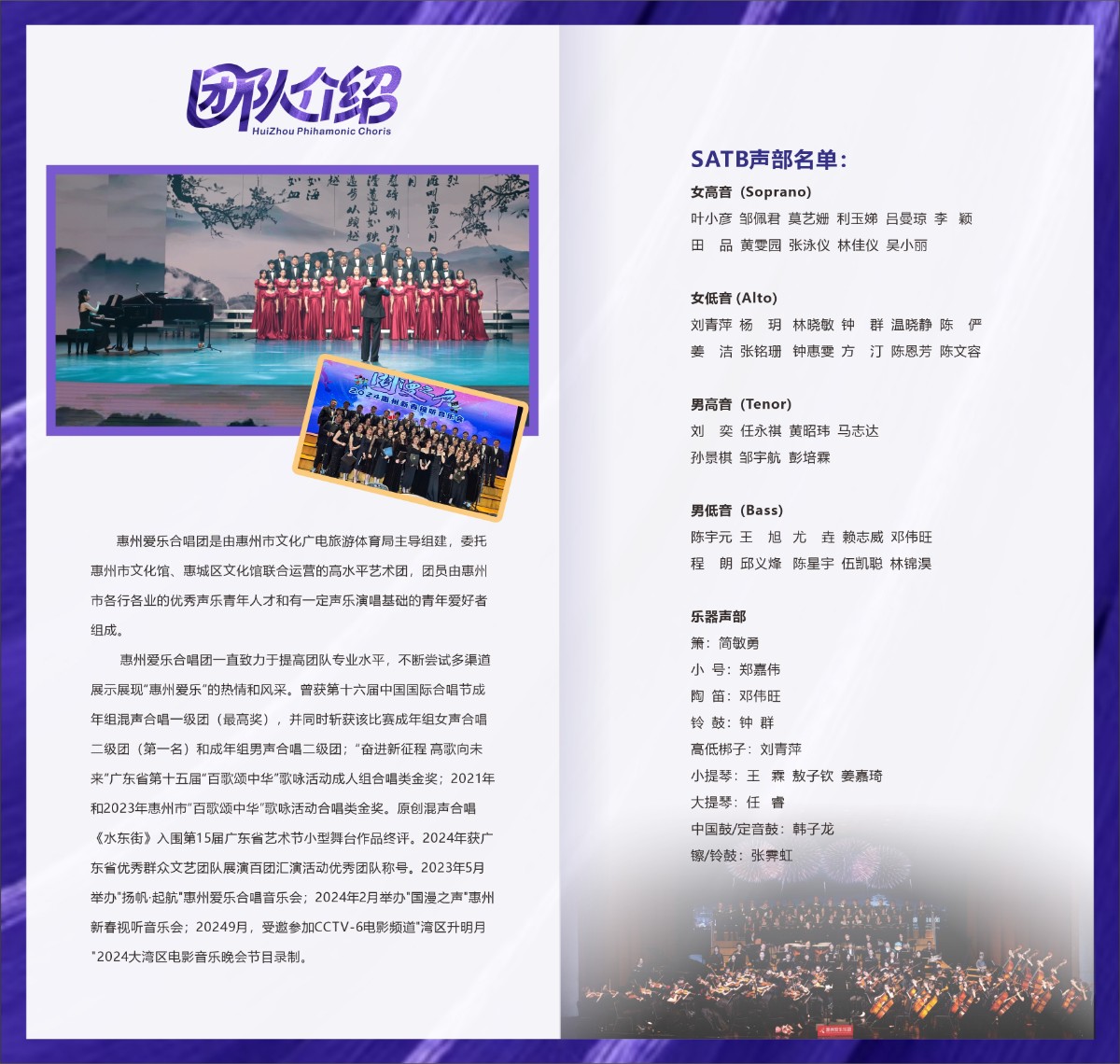 这场合唱艺术沙龙中,你会听到以通过混声合唱、女声合唱、小组表演唱等多种形式演绎的国内经典影视金曲和合唱作品,这金秋九月,和惠州大爱乐们一起共同感受合唱和声的和谐与魅力吧~!